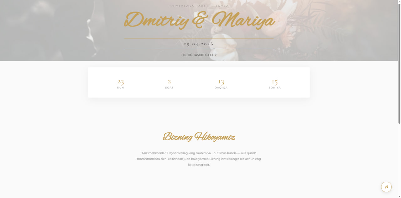 Baxtli kunlaringizning bir qismi bo'lganimizdan xursandmiz